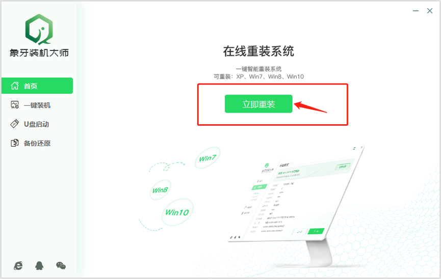 打开软件,点击“立即重装”,软件会自动检测系统软硬件信息和网络状态