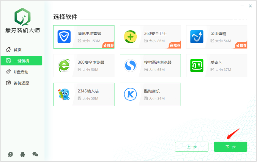 选择需要预装在电脑里的软件,如果有勾选,会在您安装完系统后自动帮您安装勾选软件。点击下一步