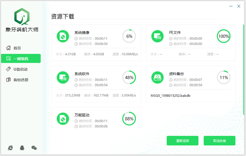 接下来象牙会为您下载系统、备份数据,您只需要操作到这里就可以离开电脑了